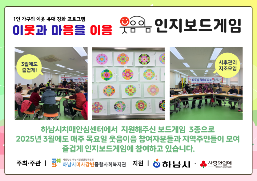 2025년 3월 1인가구 이웃 유대 강화를 위한 '웃음이음' 인지보드게임 자조모임 진행