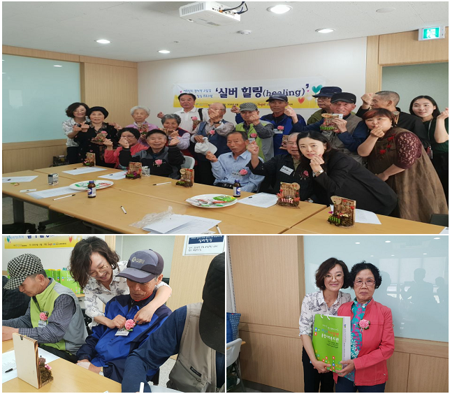 참석한 오○영 어르신은 “식물을 참 좋아하는데 오늘 프로그램에서 다육이로 예쁜 장식품을 만들어서 기분전환이 되네.”라고 표현하였고, 이○순 어르신은 “어버이날이라고 이렇게 카네이션도 달아주고 참 호강하네. 고마워요.”라고 기뻐하셨습니다.