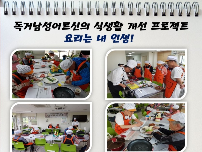 우리복지관에서는 삼성카드 열린나눔, 아이들과 미래재단의 지원으로 2018년 독거남성 어르신의 식생활 개선 프로젝트 ‘요리는 내 인생!’ 프로그램을 계획하여 진행하고 있습니다. ‘요리는 내 인생!’ 사업은 2018년 1월에 삼성카드 열린나눔이 주관한 온라인 투표에서 지역주민 분들이 함께하여 최종 2위(1,259표)를 통해 사업이 확정된 바 있습니다.