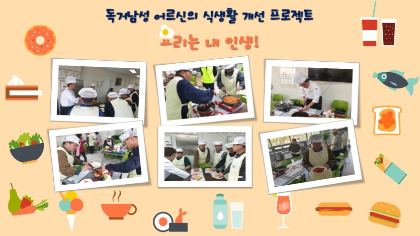 앞으로 독거남성 어르신의 영양상태 개선과 노년기 건강과 삶의 만족도를 증진시키고자 매주 목요일 ’요리는 내 인생!’ 사업이 진행 될 예정입니다.
