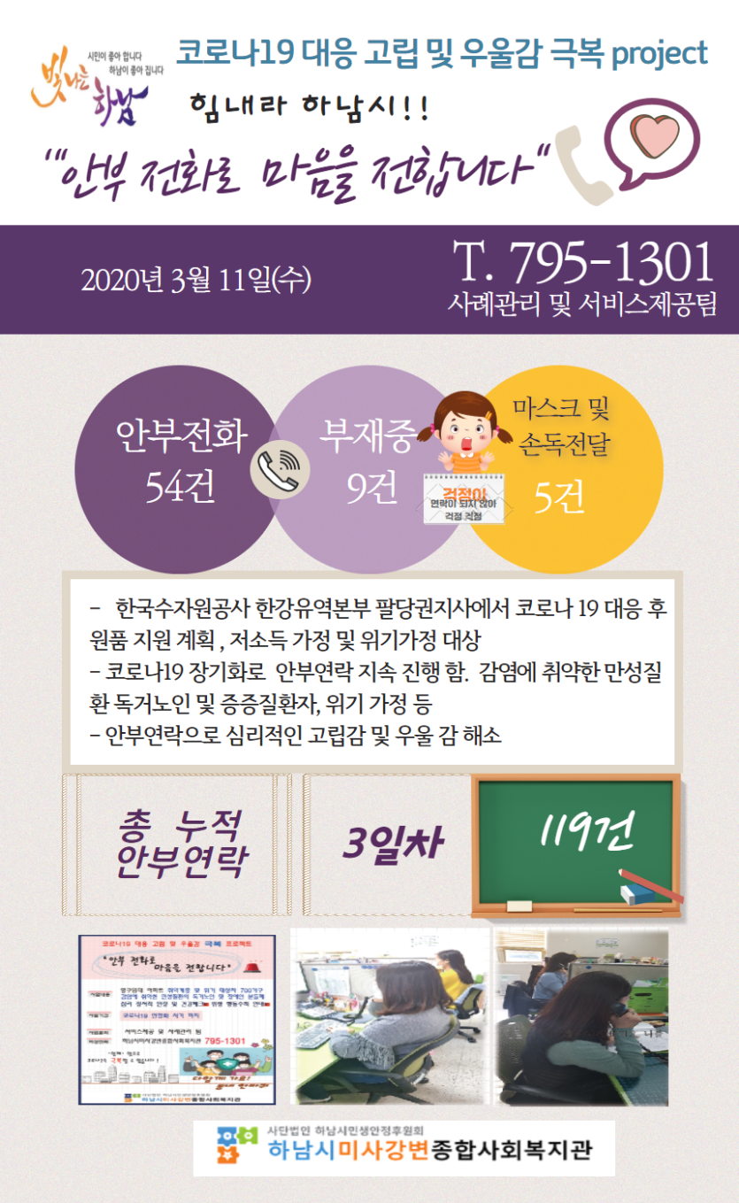 3월 11일 코로나19 극복! 안부전화로 마음을 전합니다. 게시글 작성정보 작성자 관리자 작성일 20-03-11 18:06 조회수 2,385 댓글수 0 목록 게시글 본문 - 첨부파일 1개 3월 11일.png (1.2M) 0회 다운로드 첨부일시 : 2020-03-11 18:06:00 이전글 (3/11) 12시 코로나19 유행 하.지.마! 캠페인 동참 감사드립니다. 20-03-12 다음글 (3/11) 12시 코로나19 유행 하.지.마! 캠페인 동참 감사드립니다. 20-03-11 댓글 0 등록된 댓글이 없습니다. 목록