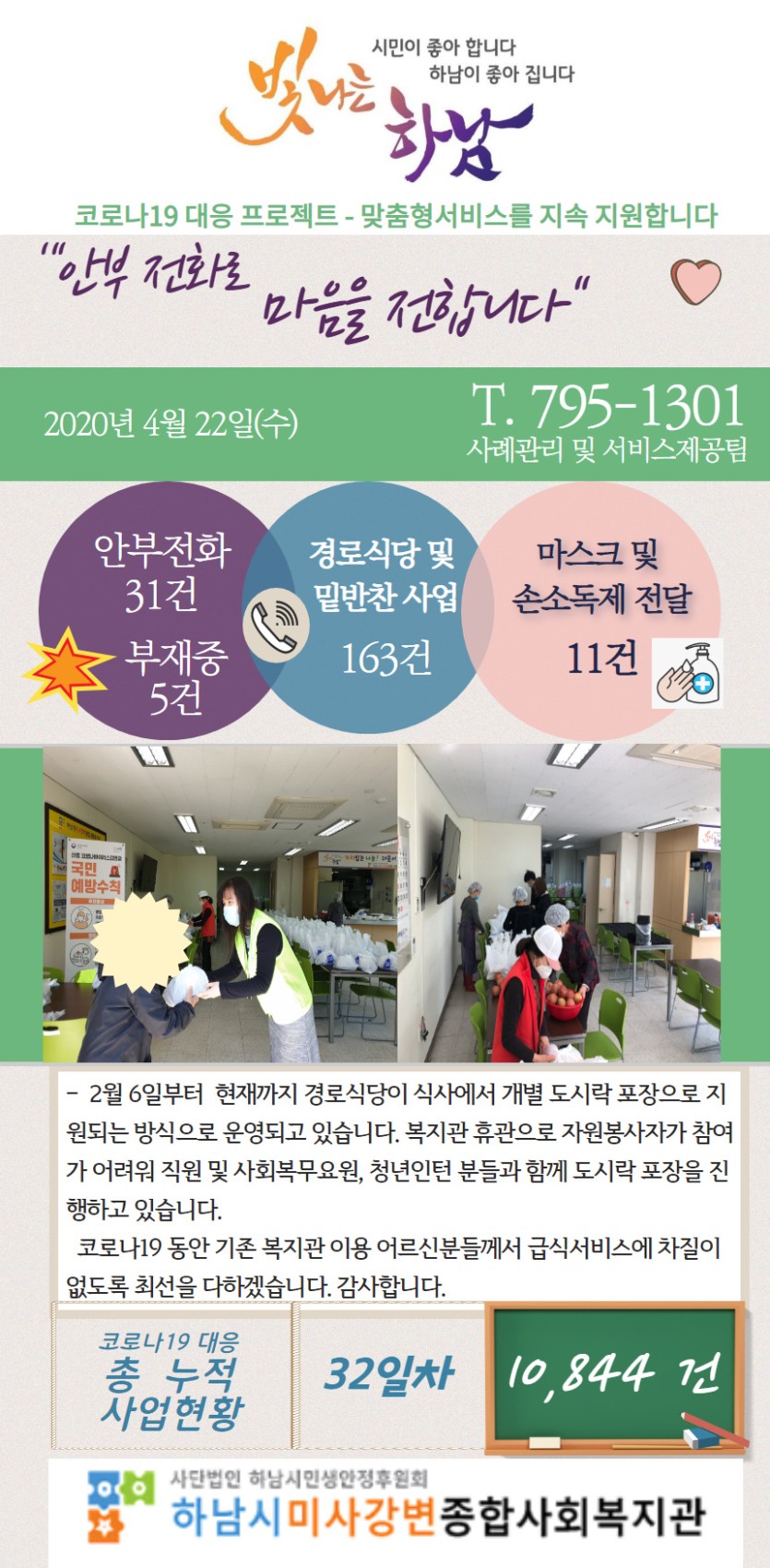 4월 22일 코로나19 극복! 안부전화로 마음을 전합니다. 게시글 작성정보 작성자 관리자 작성일 20-04-22 17:30 조회수 3,061 댓글수 0 목록 게시글 본문 - 첨부파일 1개 4.22.jpg (726.5K) 0회 다운로드 첨부일시 : 2020-04-22 17:30:00 이전글 4월 23일 코로나19 극복! 안부전화로 마음을 전합니다. 20-04-23 다음글 4월 21일 코로나19 극복! 안부전화로 마음을 전합니다. 20-04-21 댓글 0 등록된 댓글이 없습니다. 목록