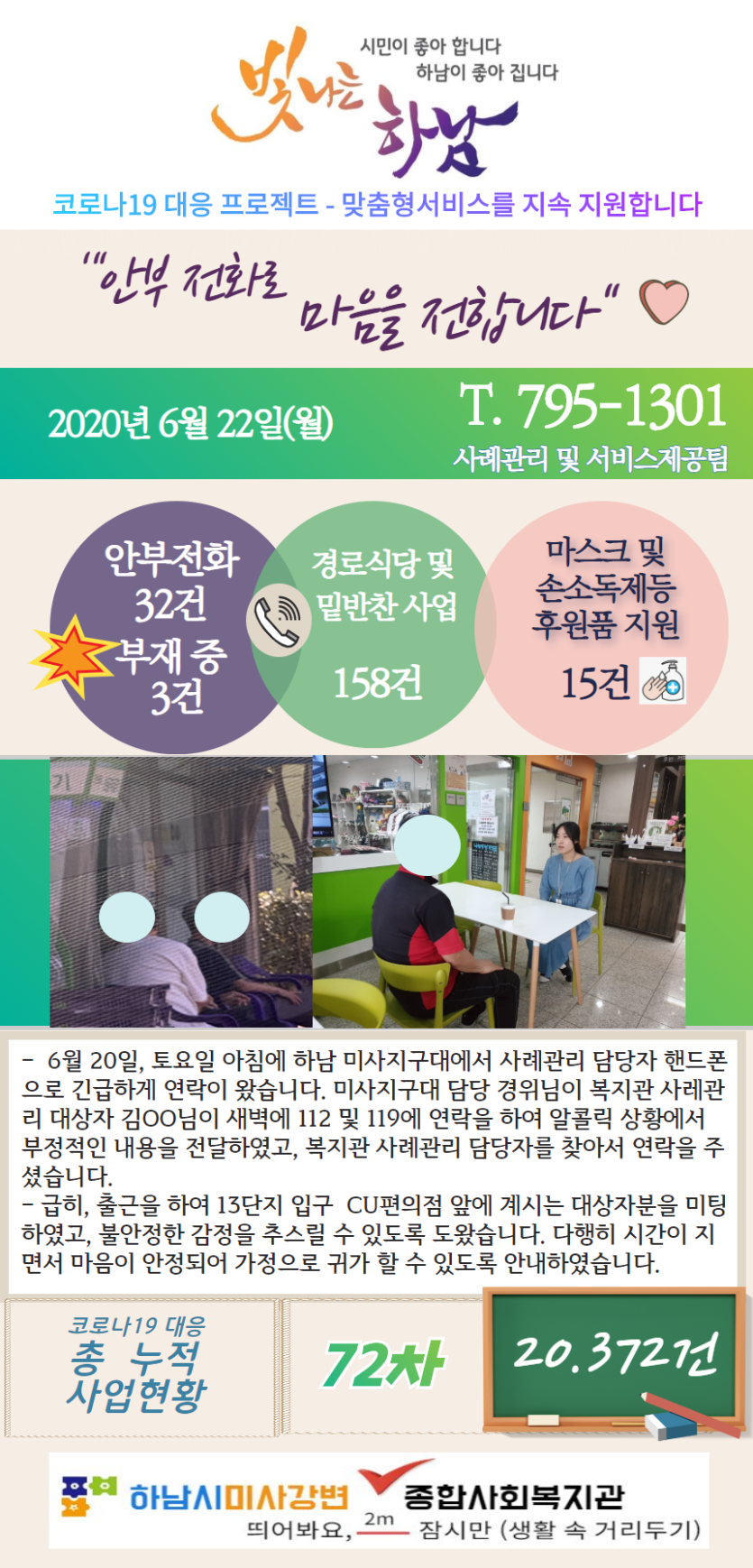 6월 22일 코로나19 극복! 안부전화로 마음을 전합니다. 게시글 작성정보 작성자 관리자 작성일 20-06-22 12:04 조회수 2,860 댓글수 0 목록 게시글 본문 - 첨부파일 1개 6.22.png (1,003.0K) 0회 다운로드 첨부일시 : 2020-06-22 12:04:00 이전글 6월 23일 코로나19 극복! 안부전화로 마음을 전합니다. 20-06-23 다음글 6월 19일 코로나19 극복! 안부전화로 마음을 전합니다. 20-06-19 댓글 0 등록된 댓글이 없습니다. 목록