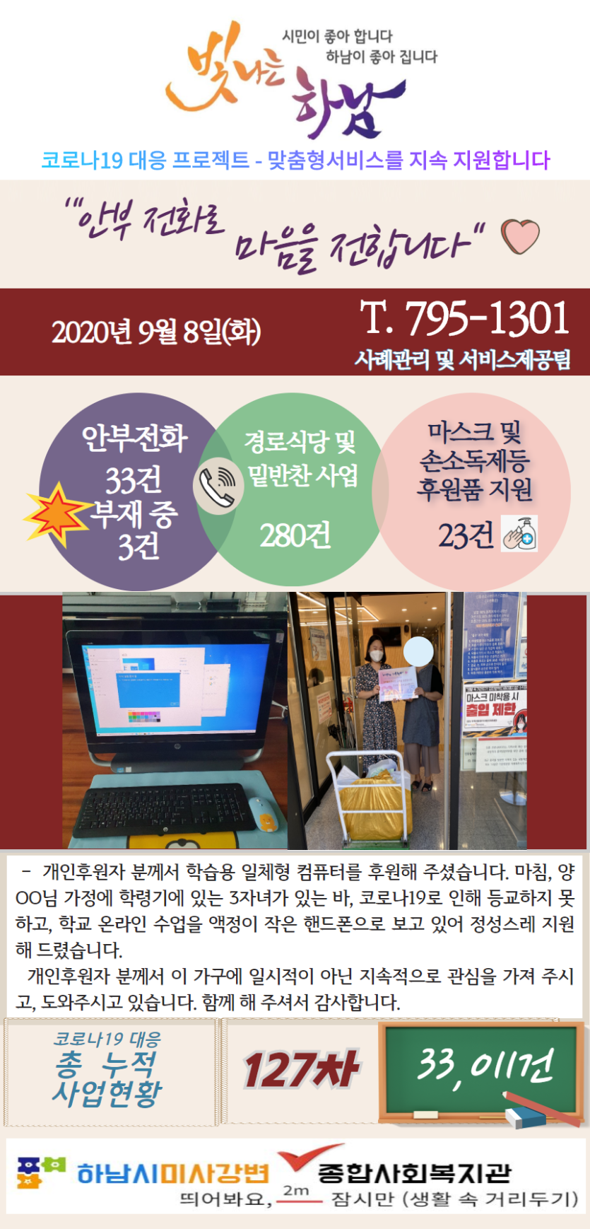 9월 8일 코로나19 극복! 안부전화로 마음을 전합니다. 게시글 작성정보 작성자 관리자 작성일 20-09-08 13:47 조회수 3,033 댓글수 0 목록 게시글 본문 - 첨부파일 1개 9.8.png (1,019.2K) 0회 다운로드 첨부일시 : 2020-09-08 13:47:00 이전글 9월 9일 코로나19 극복! 안부전화로 마음을 전합니다. 20-09-09 다음글 8월 27일 코로나19 극복! 안부전화로 마음을 전합니다. 20-08-27 댓글 0 등록된 댓글이 없습니다. 목록