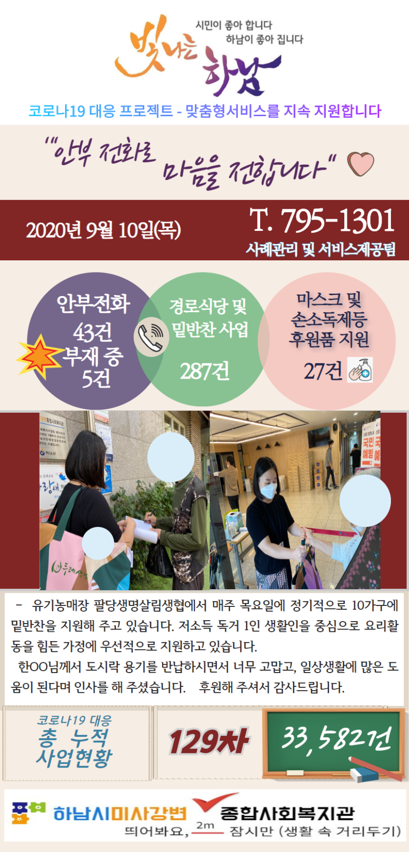 9월 10일 코로나19 극복! 안부전화로 마음을 전합니다. 게시글 작성정보 작성자 관리자 작성일 20-09-10 13:48 조회수 2,708 댓글수 0 목록 게시글 본문 - 첨부파일 1개 9.10.png (1.0M) 0회 다운로드 첨부일시 : 2020-09-10 13:48:00 이전글 9월 11일 코로나19 극복! 안부전화로 마음을 전합니다. 20-09-11 다음글 9월 9일 코로나19 극복! 안부전화로 마음을 전합니다. 20-09-09 댓글 0 등록된 댓글이 없습니다. 목록