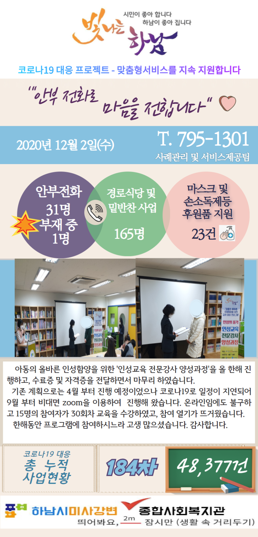 12월 2일 코로나19 극복! 안부전화로 마음을 전합니다. 게시글 작성정보 작성자 관리자 작성일 20-12-02 15:18 조회수 2,677 댓글수 0 목록 게시글 본문 - 첨부파일 1개 12.2.png (869.7K) 0회 다운로드 첨부일시 : 2020-12-02 15:18:00 이전글 12월 3일 코로나19 극복! 안부전화로 마음을 전합니다. 20-12-03 다음글 12월 1일 코로나19 극복! 안부전화로 마음을 전합니다. 20-12-01 댓글 0 등록된 댓글이 없습니다. 목록