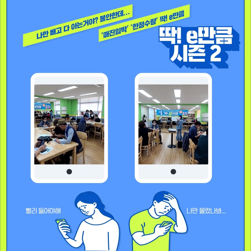 ‘딱! e만큼 시즌2’는 다양한 미디어 출현 시대에 따라 미디어 활용의 장단점을 이해하고, 사용하고 있는 스마트폰 등의 미디어를 실생활에 활용할 수 있도록 강사님을 섭외하여 진행되고 있습니다.