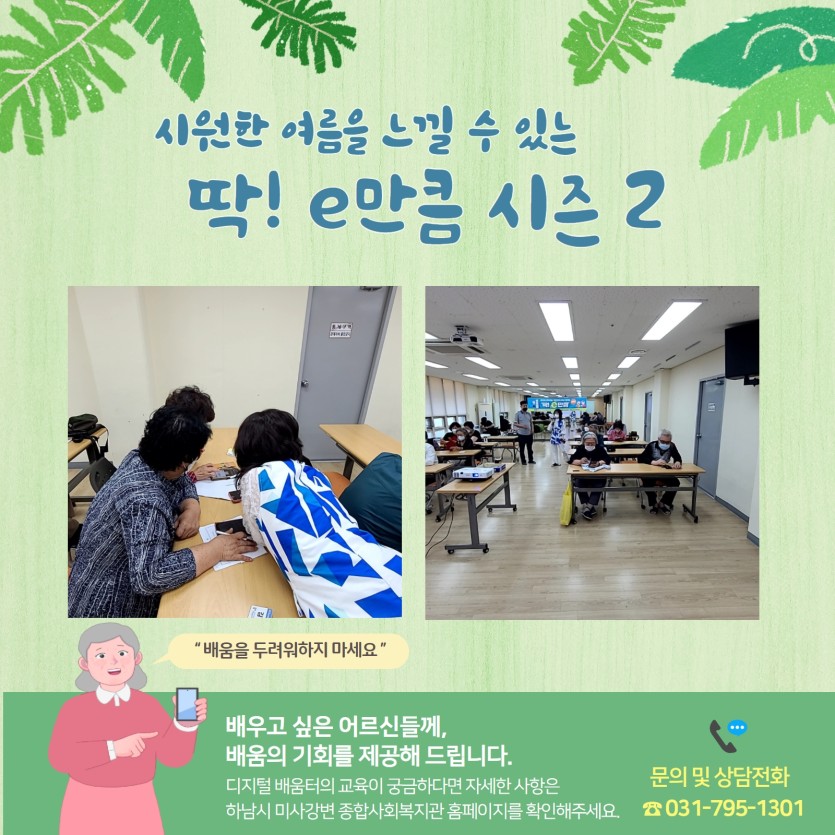 딱! e만큼 수업은 4월부터 7월까지 기본반 12회 7월부터 9월까지 심화반 12회 총 24회기로 진행될 예정입니다. 다음 9회기 수업 내용은 '일상생활에서 필요한 인터넷 검색 및 활용하기'입니다. 많은 관심과 응원 부탁드립니다.