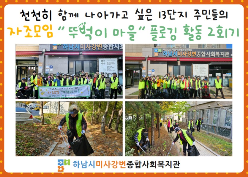 상쾌한 가을 날씨 속에 10월, '뚜벅이 마을' 주민자조모임은 두 번째 플로깅 활동에 총 18명의 주민들이 함께 참여하여 지역 환경을 지키기 위한 발걸음을 이어갔습니다.