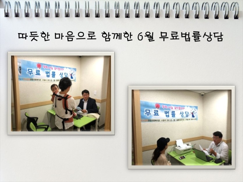 무료법률서비스는 매주 첫째 주와 셋째 주 월요일에 지속적으로 진행 될 예정입니다.