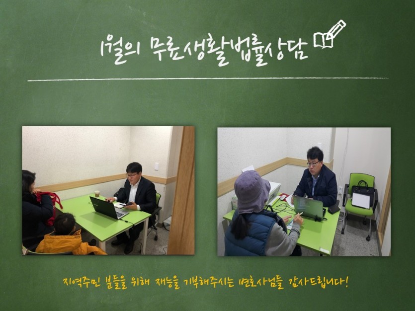 무료법률서비스는 매주 첫째 주와 셋째 주 월요일에 지속적으로 진행 될 예정입니다.