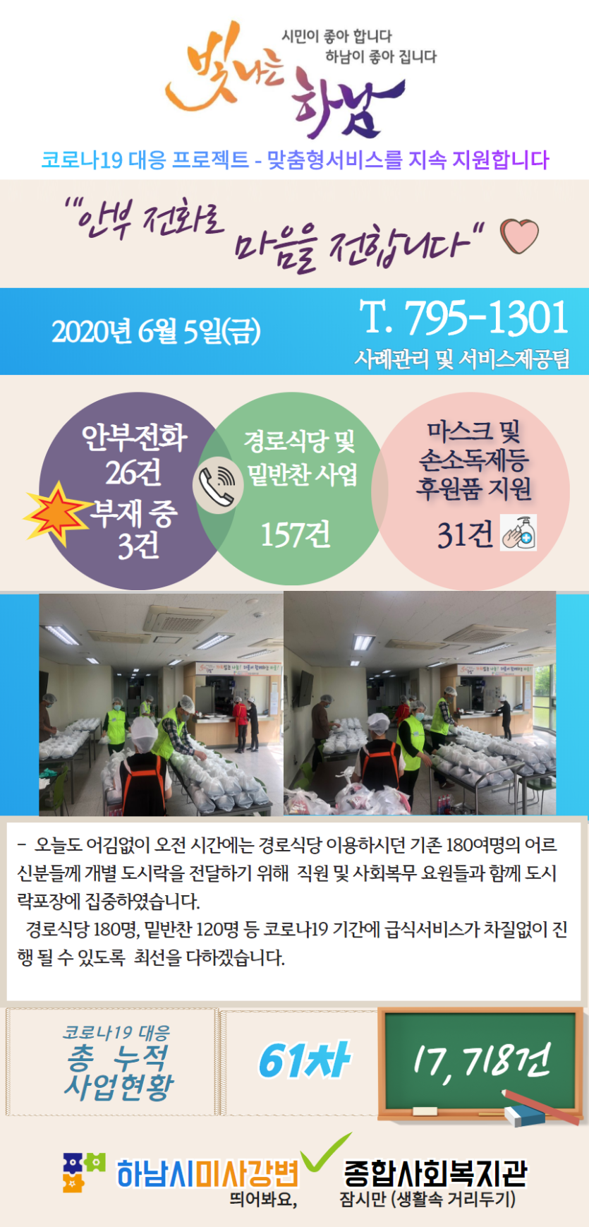 6월 5일 코로나19 극복! 안부전화로 마음을 전합니다. 게시글 작성정보 작성자 관리자 작성일 20-06-05 17:19 조회수 3,009 댓글수 0 목록 게시글 본문 - 첨부파일 1개 6.5.png (886.8K) 1회 다운로드 첨부일시 : 2020-06-05 17:19:00 이전글 6월 8일 코로나19 극복! 안부전화로 마음을 전합니다. 20-06-08 다음글 6월 4일 코로나19 극복! 안부전화로 마음을 전합니다. 20-06-04 댓글 0 등록된 댓글이 없습니다. 목록