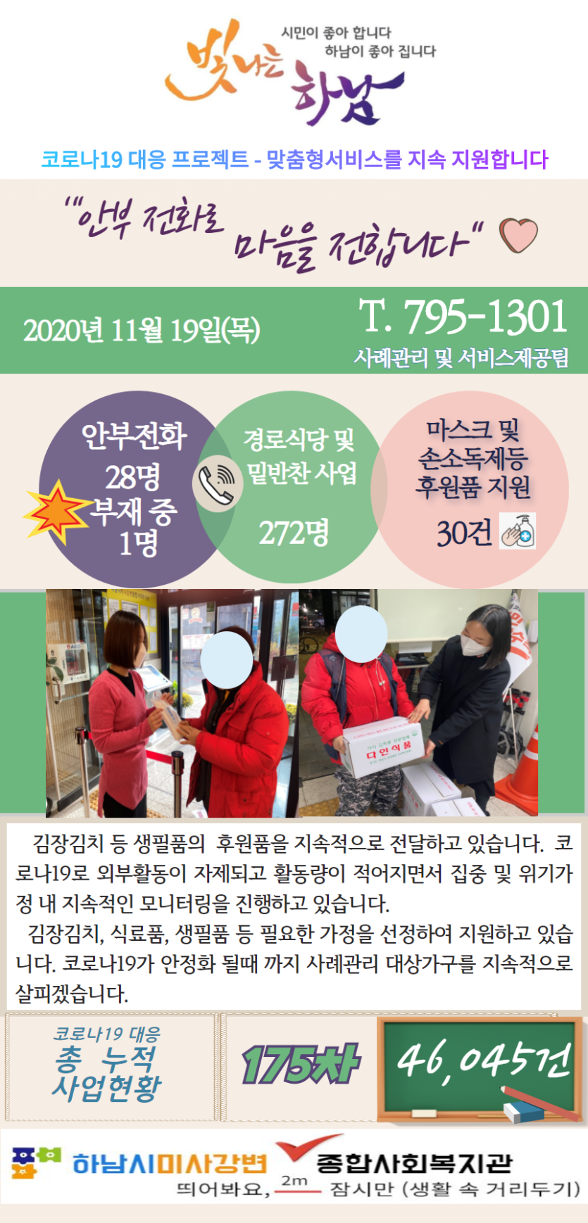 11월 19일 코로나19 극복! 안부전화로 마음을 전합니다. 게시글 작성정보 작성자 관리자 작성일 20-11-19 13:40 조회수 2,535 댓글수 0 목록 게시글 본문 - 첨부파일 1개 11.19.png (978.7K) 0회 다운로드 첨부일시 : 2020-11-19 13:40:00 이전글 11월 20일 코로나19 극복! 안부전화로 마음을 전합니다. 20-11-20 다음글 11월 18일 코로나19 극복! 안부전화로 마음을 전합니다. 20-11-18 댓글 0 등록된 댓글이 없습니다. 목록