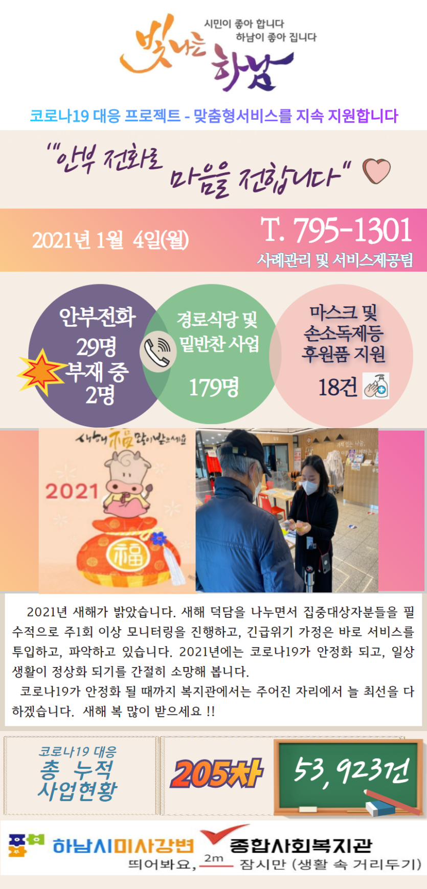 1월 4일 코로나19 극복! 안부전화로 마음을 전합니다. 게시글 작성정보 작성자 관리자 작성일 21-01-04 15:10 조회수 2,632 댓글수 0 목록 게시글 본문 - 첨부파일 1개 1.4.png (916.7K) 1회 다운로드 첨부일시 : 2021-01-04 15:10:00 이전글 2021년 복지관 시무식 21-01-04 다음글 2020년 복지관 종무식 20-12-31 댓글 0 등록된 댓글이 없습니다. 목록