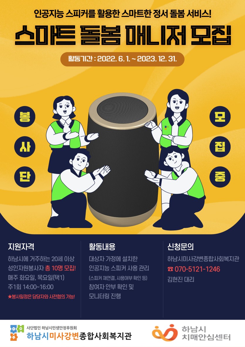 스마트 돌봄 매니저 자원봉사자 분들을 모집하고 있습니다!