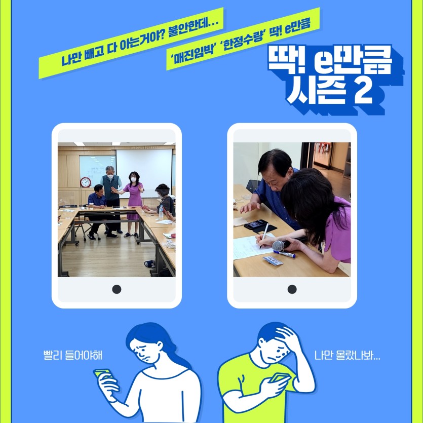 딱! e만큼 수업은 4월부터 7월까지 기본반 12회 7월부터 9월까지 심화반 12회 총 24회기로 진행될 예정입니다. 다음 10회기 수업 내용은 'SNS 활용하기‘ 입니다. 많은 관심과 응원 부탁드립니다.