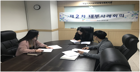 우리 복지관에서는 사례관리사업의 일환으로 매주 내부사례회의를 진행하고 있습니다.