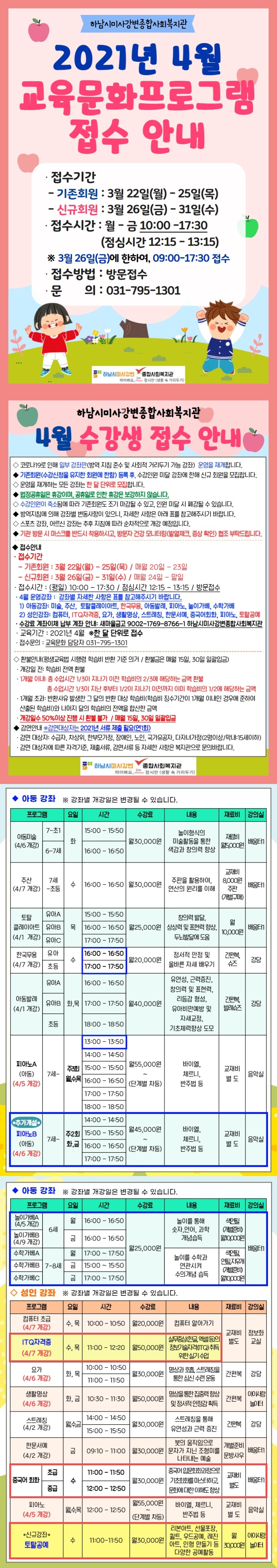 4월 교육문화프로그램 관련하여, 변경사항이 있어 안내드립니다.
